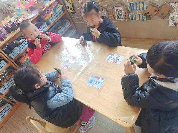“好香呀!有香味瞭,馬上好吃瞭,哇!一個個綠綠的清明粿出爐瞭。”“真香,像抹茶的味道。”“老鼠的這個是李老師和我一起做的。”孩子們介紹作品的同時,也迫不及待品嘗自己動手包的清明餜。“嗯!厲老師,真的很好吃耶!”“李老師,我可以吃兩個嗎?”孩子們意猶未盡的樣子真是可愛極瞭。
