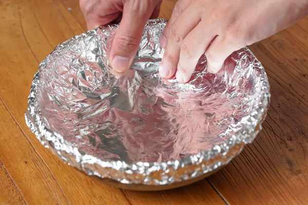 1.取一個稍有深度的碗,用錫紙做一個碗的容器備用。