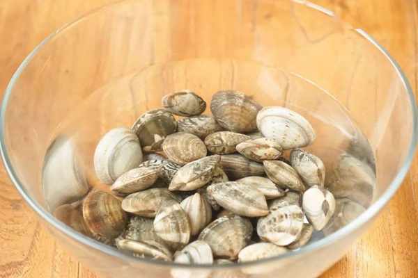2.花甲洗淨用清水沒過,撒1勺鹽吐沙浸泡2小時。