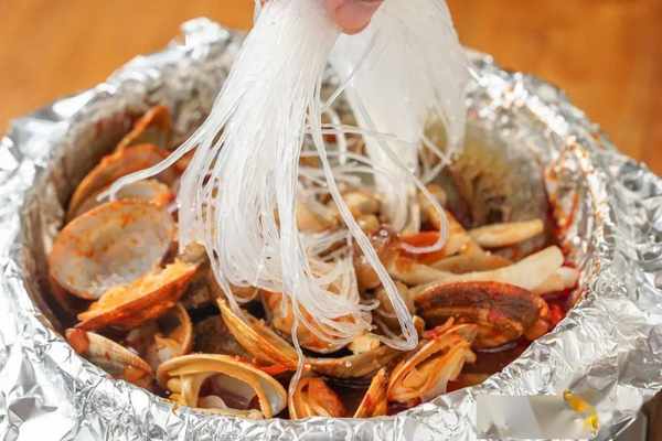 今天就跟大家分享一道家庭版錫紙花甲粉,蒜蓉的滋味全滲進辣油油的湯裏來,封口鎖味的錫紙一打開,香味瞬間溢滿整個屋子。