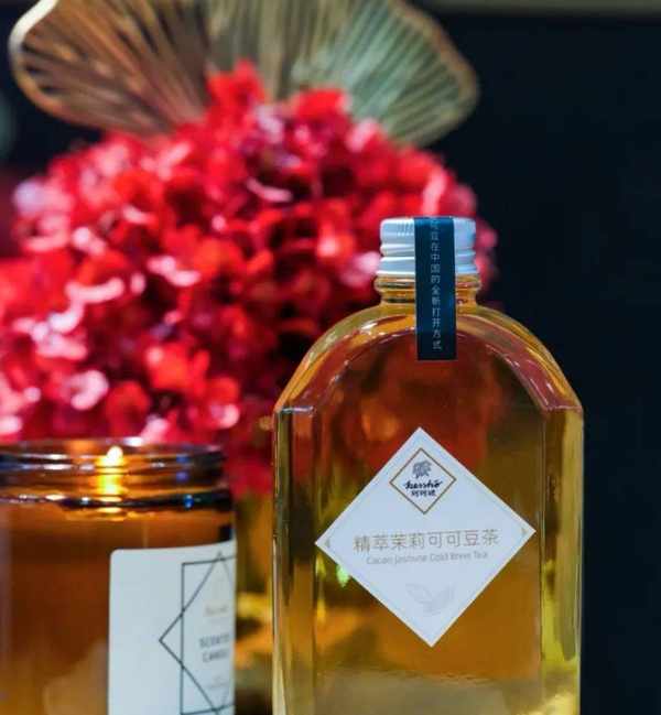 精萃茉莉可可豆茶由於低溫、長時間萃取的緣故,口味更濃鬱的同時也更加柔和,幾乎沒有任何澀味。兩款茶都以現泡茉莉花茶代替純凈水來萃取,是令人意想不到卻又分外和諧的奇妙設計,茉莉花的清香、茶香都足夠清淡雅致,增添美好風味的同時,又不至於掩蓋可可原豆的香氣。