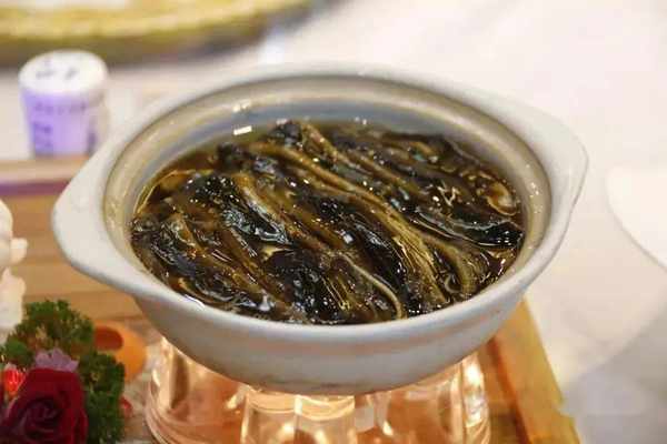 長魚,即黃鱔。長魚焯熟後,取其脊肉制成,色香味俱佳的一大盆端上桌,每一條鱔片都成年人食指長短粗細,一順排列,竹筷一夾,鱔絲兩頭柔軟地靠在一起,似小孩子的紅肚兜,把油汪汪香噴噴的芡汁全部兜住。趁熱品嘗,爽嫩樂口,蔥香蒜香鱔魚香胡椒香接踵而來。