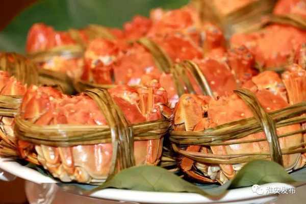 洪澤湖盛產螃蟹,中秋食蟹是淮安民間的習俗。淮上吃蟹有“九月團臍十月尖”之說,以洪澤湖所產的青蟹為食料,蟹黃、蟹粉、蟹肉、蟹腿、蟹鰲、蟹油均可入食。