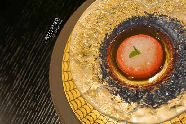 張愛玲如果在世看到這道菜,她也會驚嘆,師傅將164根鰣魚骨全部剔除,釀入筍粒的同時,仍保留魚形,上層放置炸到酥脆的魚鱗,淋上20年花雕酒蒸煮,掀開竹子漁網的那一刻,魚躍出水,酒香陣陣。