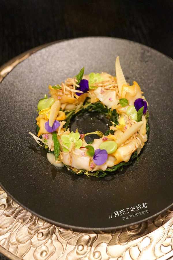 海膽石榴包內含蝦仁、蜜豆以及火腿茸,以日本新鮮海膽置頂,蔥油鮑魚脆塔甄選南非五頭鮑,淋上師傅秘制柚子雞蛋醬,以南美銀鱈魚制成的蘇式熏鱈魚,甜中帶咸、咸中帶鮮。