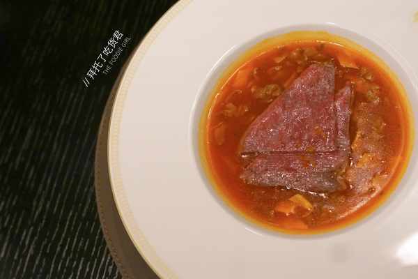 寶藏食材鹿兒島和牛以酸湯口感呈現,堪稱一絕,和牛入口即化,搭配酸湯,酸爽開胃。
