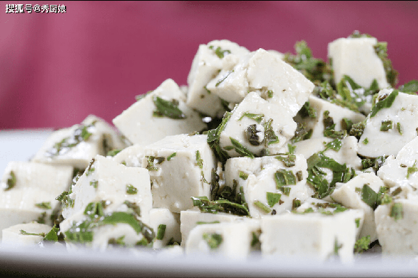 2.將控幹水分的花椒芽剁碎,裝入盆中,取一塊豆腐,切成小方塊,放進開水鍋中,焯水2分鐘,去除豆腥味,瀝幹水分,將豆腐和花椒芽菜裝入盆中,加入鹽和香油,翻拌均勻,即可食用。