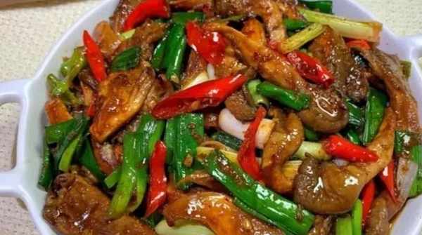 2、土豆去皮洗凈切條,青椒切條,起鍋燒油,爆香蔥花,放入土豆翻炒三分鐘倒入料汁,倒入青椒翻炒至斷生出鍋。
