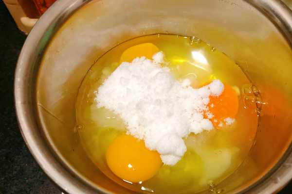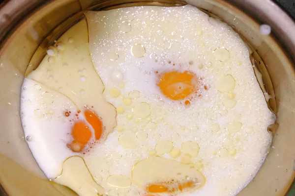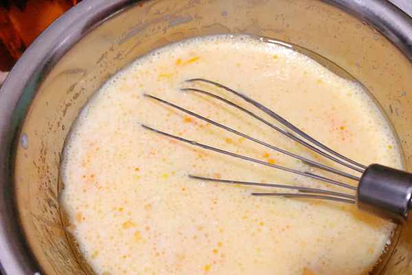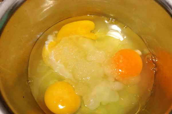 榴蓮千層餅皮需要準備的食材:三個雞蛋、60g白糖、30g玉米油、一袋純牛奶100g低筋面粉。
