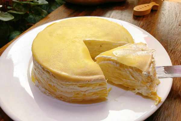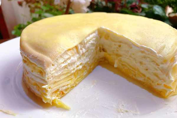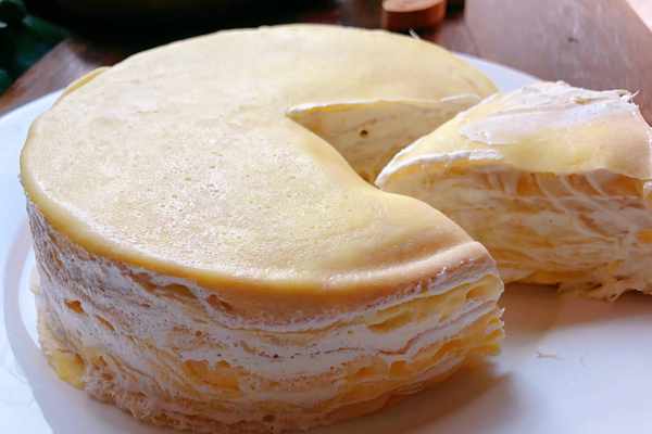 冷藏後的榴蓮千層蛋糕,定型很好,沒有松塌,口感松軟,真的是超級好吃。