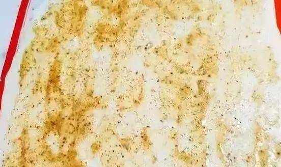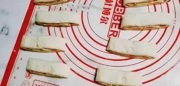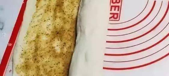 6、均勻的塗抹上椒鹽油酥,兩頭要留點接口