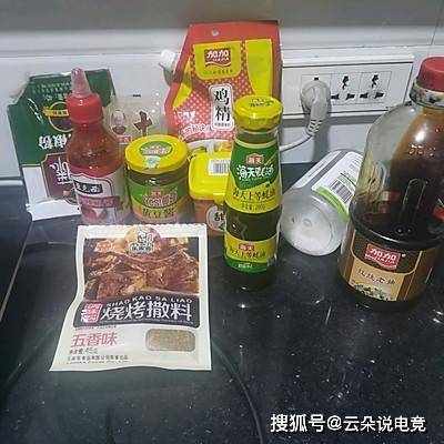 1.準備調味料:燒烤醬、蠔油、老抽、白糖、甜面醬、醬油、番茄辣椒醬、黑胡椒粉、十三香、雞精。