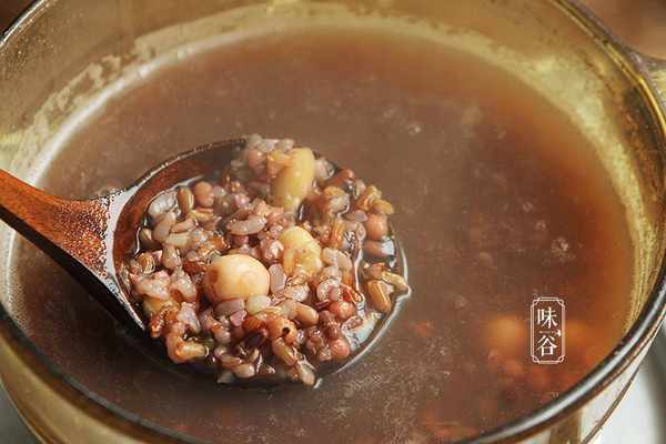 【食材】:赤小豆、蕎麥米、白扁豆、薏米、紅米、蓮子、冰糖(沒有具體的量,隨意放)