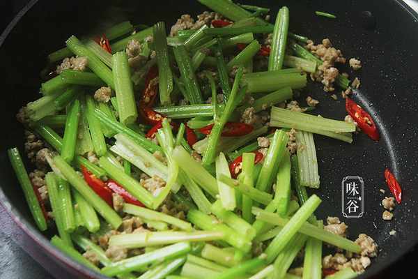 【食材】:芹菜 適量,淀粉 1小勺,生抽 1勺,雞粉 少許、肉末 適量,料酒 1勺、蠔油 1勺、蒜 適量、辣椒 適量、糖 1小勺、鹽 1小勺
