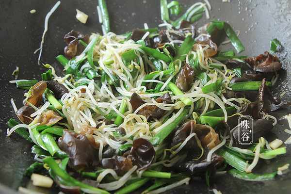 【做法】:1、幹木耳用清水泡發開來,豆芽洗凈控幹水分,韭菜切掉根部,挑出一些爛葉,沖洗幹凈切好(大約切2厘米長)