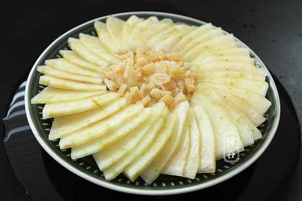 【食材】:冬瓜 適量,淀粉 1小勺、生抽 2勺,幹貝(可以用蝦米替換) 適量,蠔油 1勺,香蔥 少許,