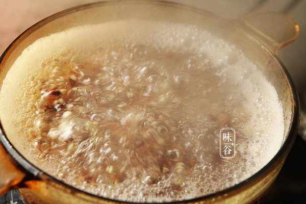 3、煮好後薏米基本開花瞭,但湯水不會黏稠,喜甜的出鍋後可加少許冰糖。