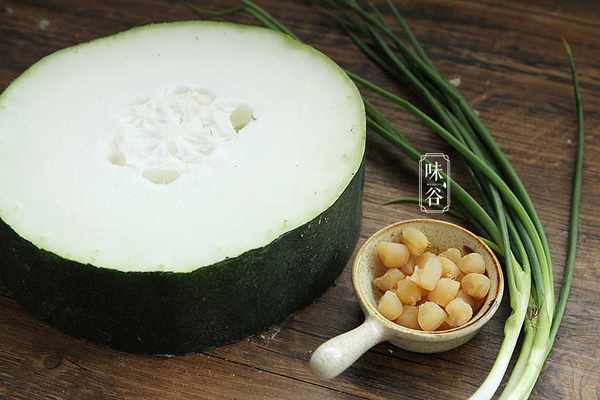 【做法】:1、冬瓜去皮去籽之後,切成薄片,幹貝提前用清水泡軟泡好,撕成條。