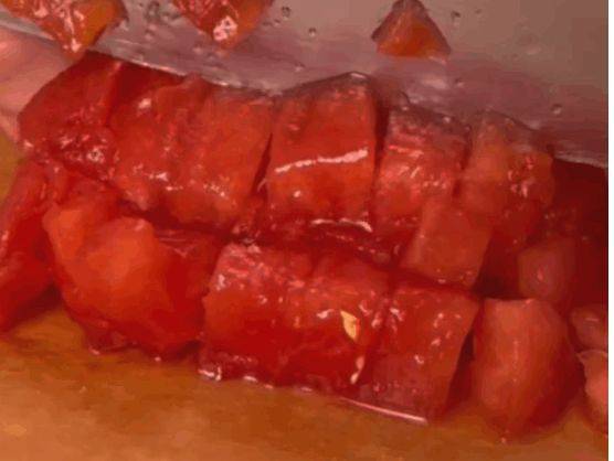 - 做法 -1. 將蔬菜洗凈瀝幹,番茄頂部劃十字刀,用叉子插入底部,放在火上烤1-2分鐘,至皮受熱爆開,去皮切丁。