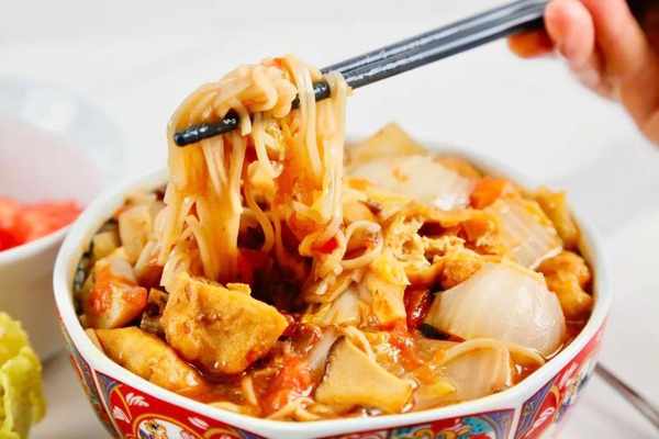 山藥面用的新鮮山藥,打碎成漿,混合小麥粉制成,爽滑勁道,易煮不糊湯,不易坨。