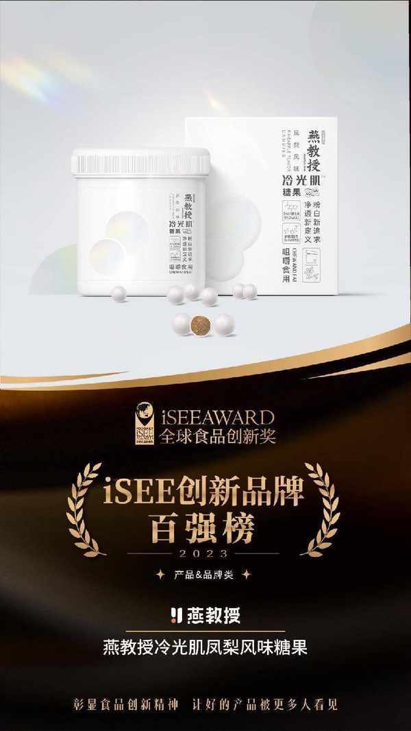 近日,廣東浠芮生物科技有限責任公司旗下的燕教授品牌中的燕教授冷光肌鳳梨風味糖果產品成功晉級iSEE全球食品創新獎中產品&品牌類的百強榜。