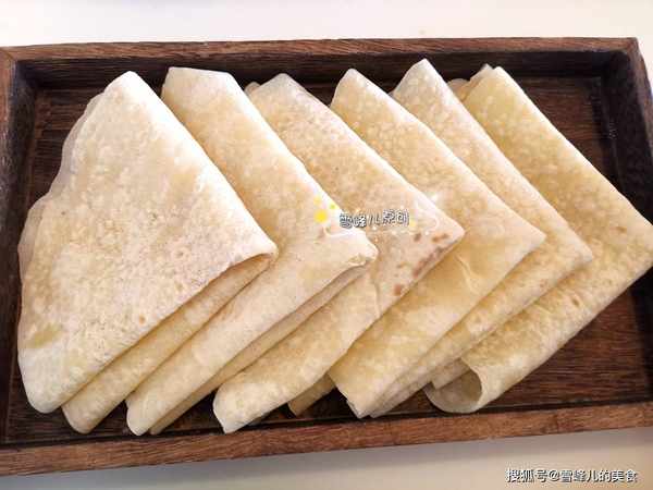 3,平底鍋燒熱,放上搟好的薄餅,一烙就會鼓泡,出鍋揭開即可,春餅一邊搟制一邊烙,1分鐘就能烙一張,十分簡單。