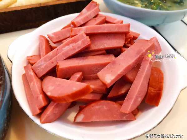這一盤火腿是純肉的火腿,吃起來肉很多,淀粉是非常少的,搭配春餅很合適,剛買回的火腿很新鮮,簡單一切就上桌。