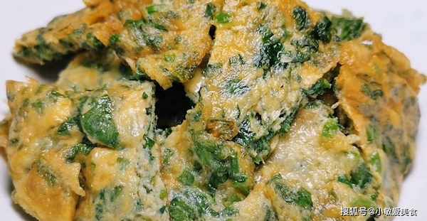 3、然後再把芹菜的葉子改刀切成碎末,放到碗中,打入兩到三個雞蛋,隻要放點食用鹽,用筷子攪拌均勻。
