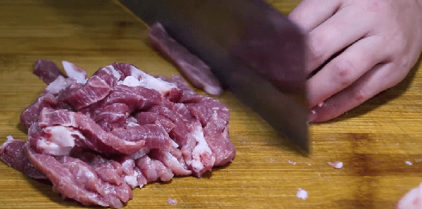 1.用溫水清洗瘦肉,切成厚片,然後切成寬條,然後放入盤中備用。
