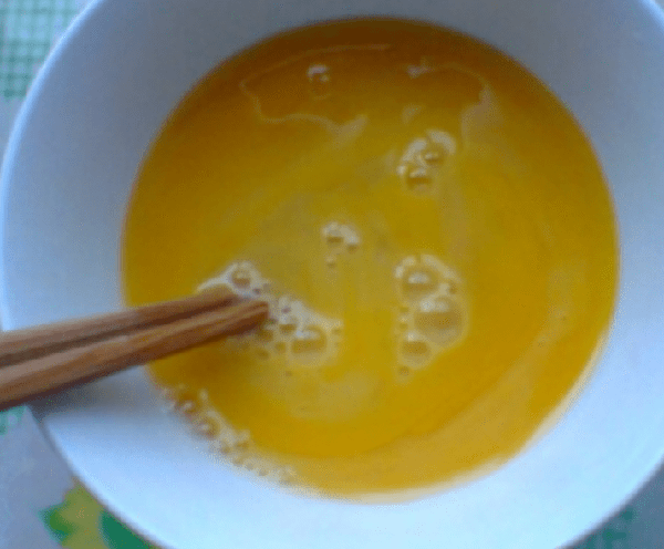 第二步:用筷子把雞蛋攪拌均勻。