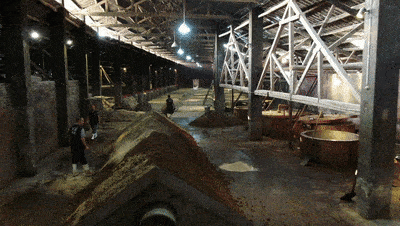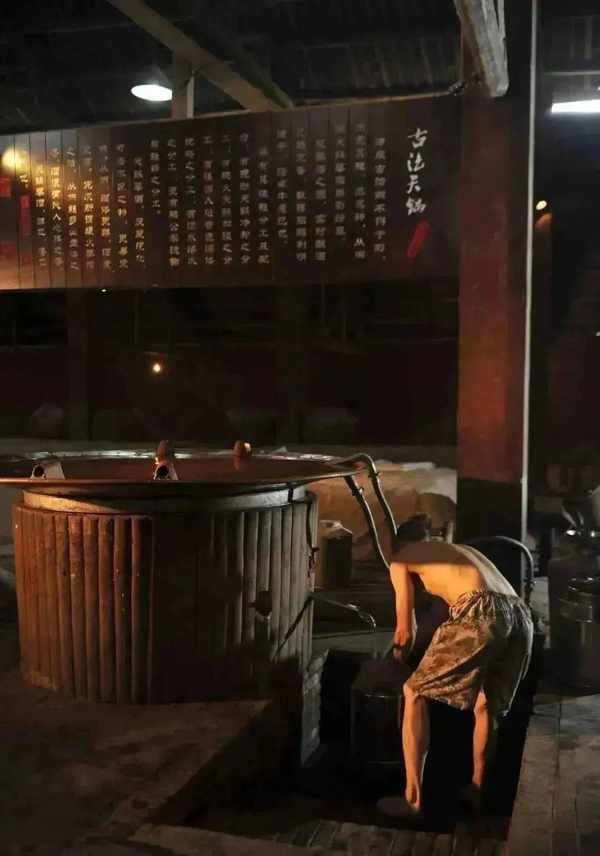 眼前的這口類似大缸的容器被稱為“天鍋”。通過天鍋釀出來的酒更加幹凈醇厚,這就是三十六坊酒莊獨特的釀酒工藝——天鍋蒸餾工藝。“該工藝早在明代就已經出現,與其他蒸餾工藝最大的差別就是其內置冷凝的出酒方式。”袁舒波說,由於出酒溫度高,很多異味物質的沸點都很低,所以酒液流出甑外的時候,大量的異味物質便揮發到空氣中,同時很多未冷凝的酒蒸汽也會一同揮發,這也是天鍋酒糧耗高、蒸餾效率低、產量小的最主要原因。