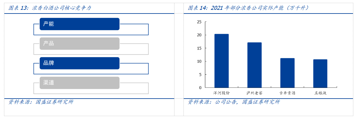 濃香型最早又被稱為瀘香型,1959年出版新中國第一本釀酒教科書《瀘州老窖大曲酒》,規范瞭全國瀘(濃)香型白酒的生產工藝,後來的專傢、學者、社會各界人士把瀘州老窖譽為“濃香鼻祖,酒中泰鬥”。由於釀造工藝的特點,老窖池的多寡對濃香優質酒的產量有決定性作用。相較於傳統的品牌力、渠道力和產品力三傢馬車,產能和優酒率對濃香白酒更為重要,是各傢酒企的“傢底”。