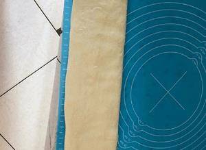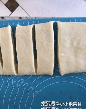早上把面團拿出來不用再揉(不要再揉)直接揉成8厘米高1厘米厚的長條。