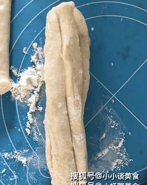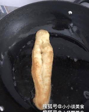 將油倒入鍋中,待油溫升至180度後放入。放的時候可以沿途把面團拉伸一下(溫度很重要,有溫度計最好,沒有也沒關系,看到有點冒泡就扔一小塊面團在裡面,面團會浮起來。油的溫度剛剛好)