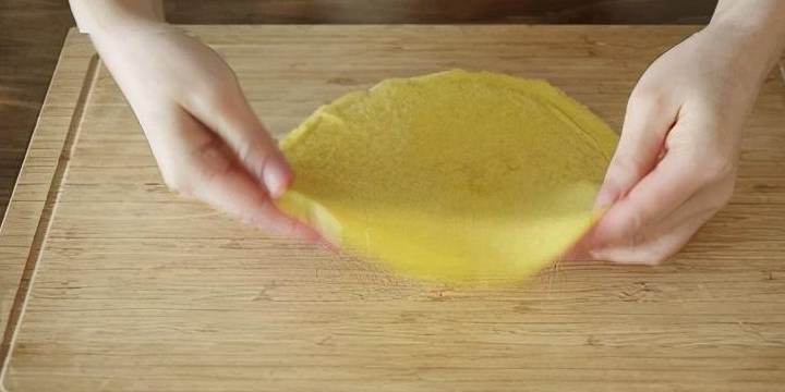 1.攤餅皮一定要將平底鍋預熱,不然面糊不能迅速成型,做出來的餅皮口感不好;倒入面糊時也一定要開小火。