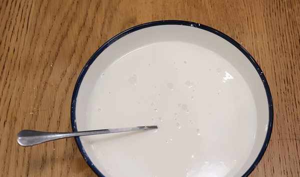 2.倒入溫牛奶繼續攪拌,使糖完全融化。