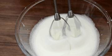 8.開始制作夾心,20克白砂糖分3次倒入淡奶油中進行打發,直至奶油出現明顯的紋路,取出打蛋器,會帶有小彎鉤即可。
