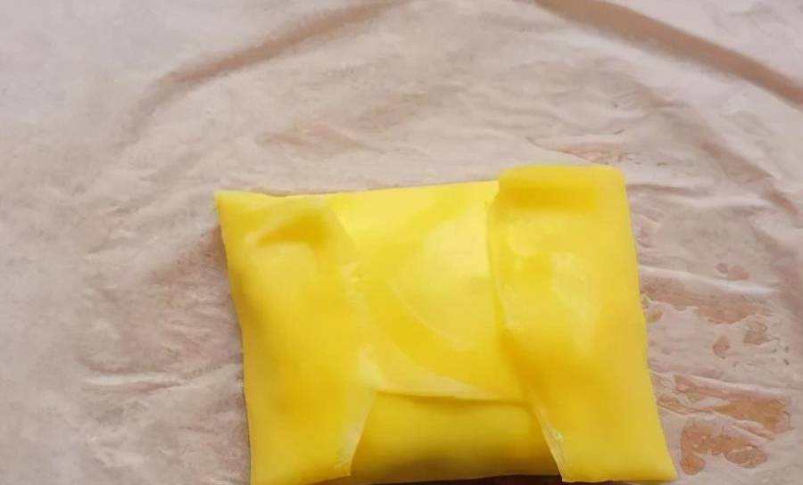 11.將四周的餅皮向中間折疊,包成方塊狀,再翻轉,將折疊部分朝下放置即可。