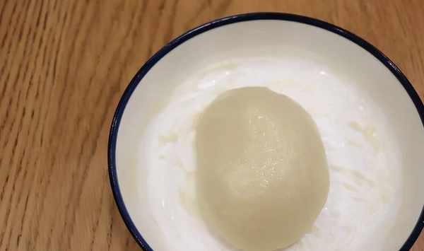 7.用包湯圓的方法將其包裹嚴實,多餘的面皮可揪下來,這就是完成的糯米糍。