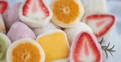 水果糯米糍外形可愛,切面特別好看。口感很Q很糯,芒果口味是最好吃的,但是橘子口味也很特別,吃的時候一口一個,咬下去會有爆汁兒。