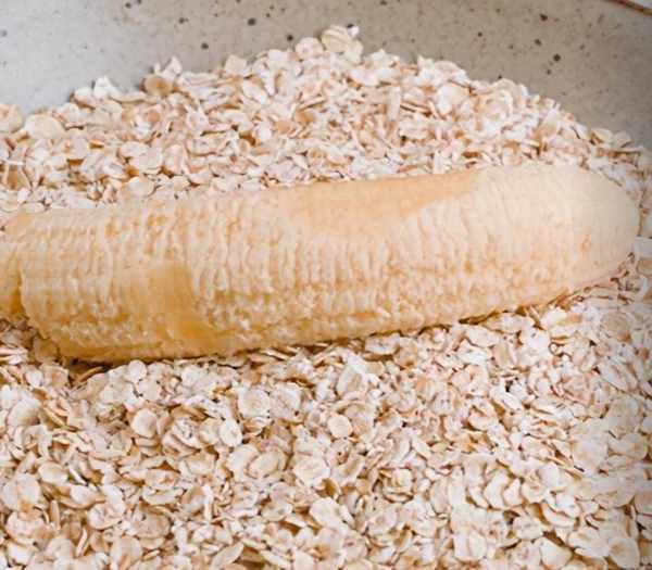 160克燕麥加兩根香蕉,捏揉成團靜置成團。