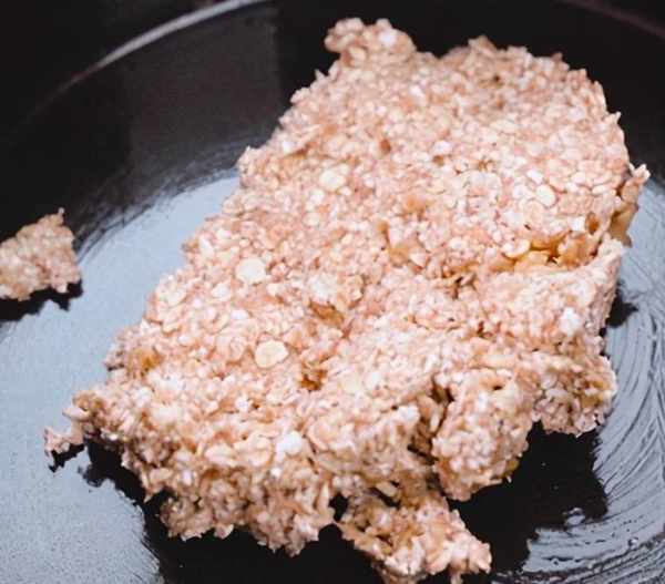磨具中抹上一層黃油倒入燕麥泥壓實,烤箱180度預熱10分鐘,放入燕麥,先烤10分鐘定型。