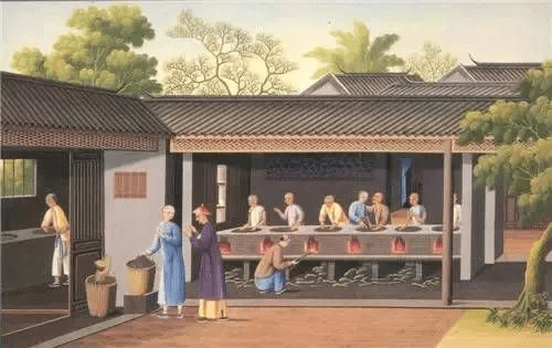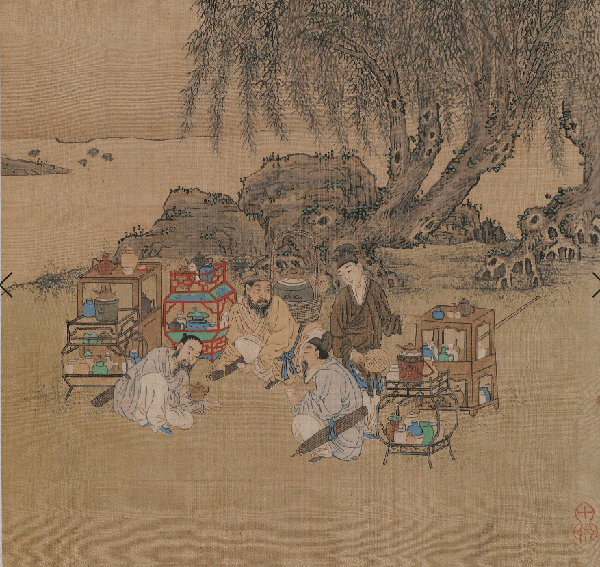 中國茶史的起源,眾說紛紜,而茶道的興盛卻早有實載。唐代開元以後,中國的“茶道”大行,飲茶之風彌漫朝野。舉凡王公朝士、三教九流、士農工商,無不以茶為好,甚至出現瞭茶水鋪,“自鄒、齊、泡、隸,漸至京邑城市,多開店鋪,煎茶買之。不問道俗,投錢取飲。”