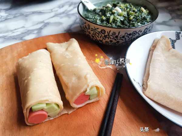 我家孩子很愛吃各種餅,尤其是能卷菜的薄餅,以前烙薄餅又要和麵又要揉面,很費勁,想要早上吃就要很早起床。我從老家的煎餅做法受到了啟發,不用和麵不用揉面,簡單一攤就搞定,5分鐘就能上桌,孩子超級喜歡吃。