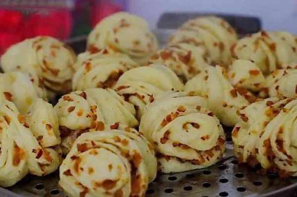 鍋中倒入水,在篦子上刷上一層食用油,將做好的花卷都擺放在鍋中,中間要留有空隙,防止蒸熟體積變大,花卷都粘連在一起,開水上鍋蒸,大約蒸15分鐘左右,15分鐘之後關火燜3分鐘之後再打開蓋子,取出來放涼就可以吃瞭,蒸熟的花卷不要著急打開蓋防止花卷變形塌陷。