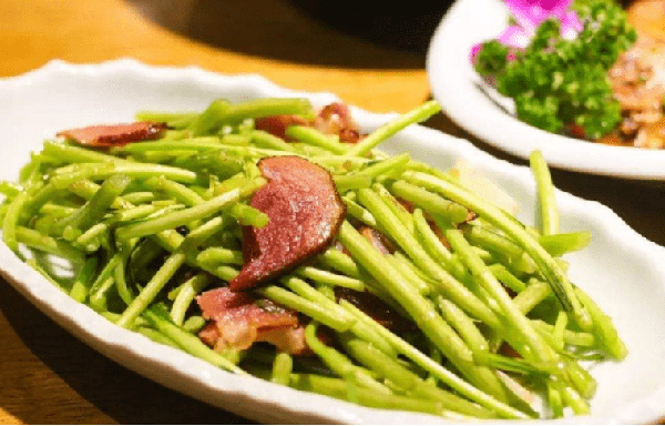 泥蒿是湖北當地有名的一種小青菜,有清熱解毒的作用,配上臘肉一起炒,熟吃起來味道非常鮮美,是湖北當地有名的傢常菜。