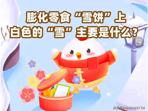 螞蟻莊園今日答案:膨化零食“雪餅”上白色的“雪”主要是什麼?答案:糖。