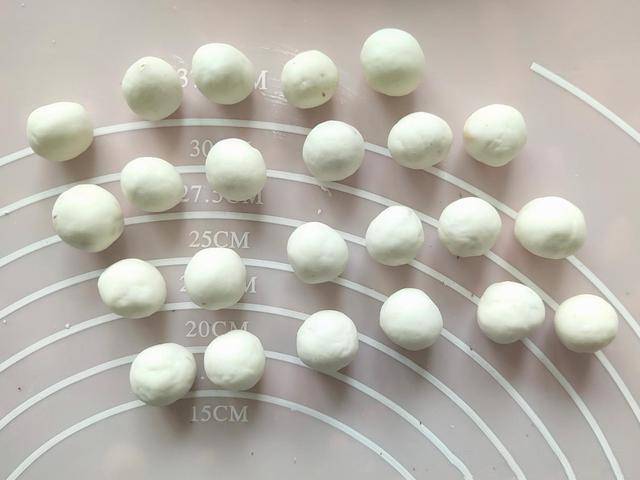 取一個拇指大小的面團,用花生包起來,揉成小球