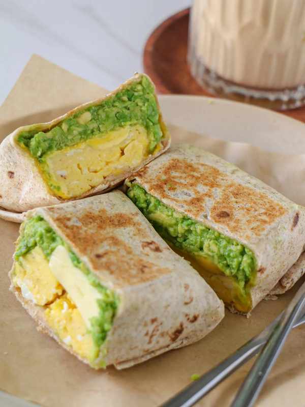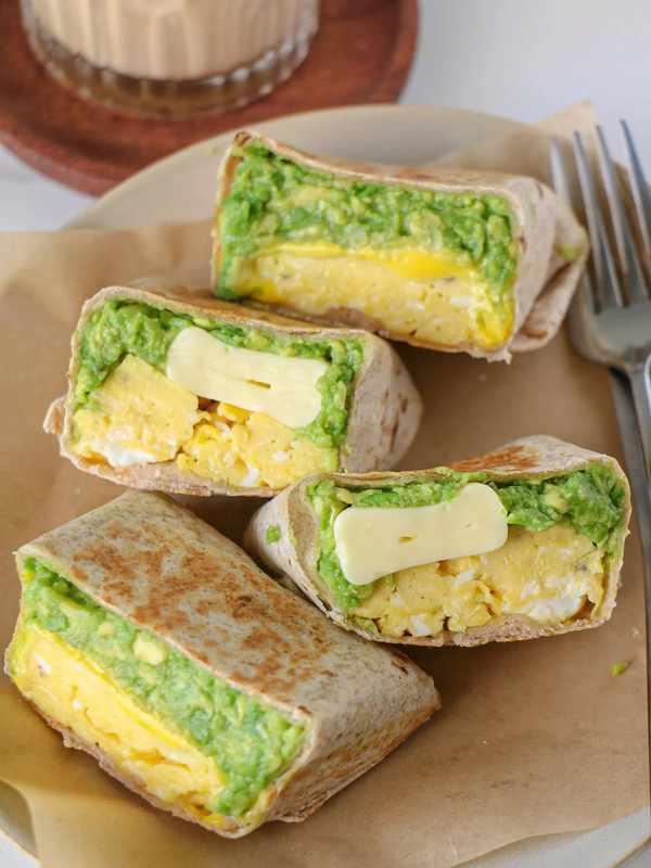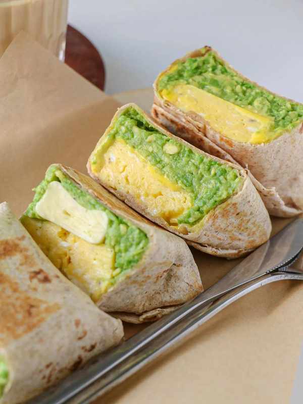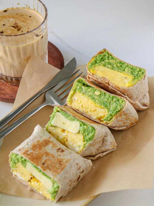 營養早餐芝士牛油果滑蛋全麥卷餅