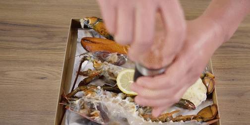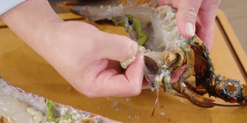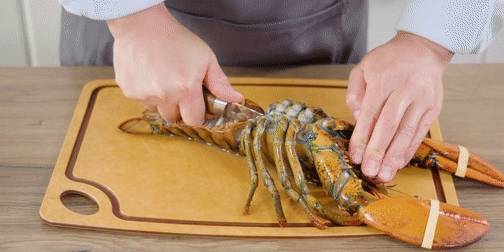 -波士頓龍蝦洗凈後,對半剖開。